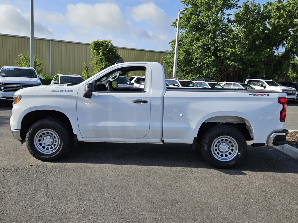 Summit White 2025 Chevrolet Silverado 1500 WT 4WD 4WD 8-Speed Automatic 2.7L I4 Turbocharged DOHC 16V LEV3-SULEV30 310hp 120-Volt Bed Mounted Power Outlet, 120-Volt Interior Power Outlet, 220 Amp Alternator, 3.5 Monochromatic Display Driver Info Center, Apple CarPlay/Android Auto, Auto High-beam Headlights, Automatic Emergency Braking, Bluetooth® For Phone, Deep-Tinted Glass, Delay-off headlights, Dual front impact airbags, Dual front side impact airbags, Electronic Cruise Control, Emergency communication system: OnStar, EZ Lift Power Lock & Release Tailgate, Following Distance Indicator, Forward Collision Alert, Front Frame-Mounted Black Recovery Hooks, Front Pedestrian Braking, Fully automatic headlights, HD Rear Vision Camera, Heated Power-Adjustable Outside Mirrors, Heavy-Duty Air Filter, High Gloss Black Mirror Caps, Hitch Guidance, Illuminated entry, Inside Rear-View Mirror w/Tilt, IntelliBeam Automatic High Beam On/Off, Lane Change Alert w/Side Blind Zone Alert, Lane Keep Assist w/Lane Departure Warning, LED Cargo Area Lighting, Locking Tailgate, Low tire pressure warning, OnStar Services Capable, Outside temperature display, Perimeter Lighting, Preferred Equipment Group 1WT, Premium audio system: Chevrolet Infotainment 3, Radio: Chevrolet Infotainment 3 System, Rear Cross Traffic Braking, Rear Pedestrian Alert, Rear step bumper, Remote Keyless Entry, Rubberized-Vinyl Floor Covering, SiriusXM Delete, Solar Absorbing Tinted Glass, Standard Suspension Package, Teen Driver, Tire Pressure Monitoring System, Trailering Package, Ultrasonic Front & Rear Park Assist, Voltmeter, Wheels: 17 x 8 Ultra Silver Painted Steel, Wi-Fi Hot Spot Capable, Work Truck Package, WT Convenience Package, WT Safety Package, WT Value Package. Price includes: $1000 - GM Bonus Cash. Exp. 01/02/2026 $3000 - Chevrolet Consumer Cash Program. Exp. 01/02/2026 $500 - GM Military Cash Allowance Program. Exp. 01/02/2026