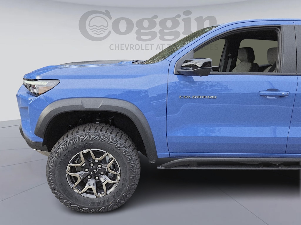 Reef Blue Metallic 2026 Chevrolet Colorado ZR2 4WD 8-Speed Automatic 2.7L I4 Turbocharged DOHC 16V LEV3-ULEV50 310hp 8-Way Power Driver Seat Adjuster, Adaptive Cruise Control, Apple CarPlay/Android Auto, Auto High-beam Headlights, Auto-dimming Rear-View mirror, Automatic Emergency Braking, Automatic temperature control, Bose Premium 7-Speaker Audio System Feature, Chevy Safety Assist, Compass, Delay-off headlights, Emergency communication system: OnStar, Following Distance Indicator, Forward Collision Alert, Front Bucket Seats, Front dual zone A/C, Front fog lights, Front Pedestrian & Bicyclist Braking, HD Surround Vision, Heated front seats, Heated steering wheel, Illuminated entry, IntelliBeam Automatic High Beam On/Off, Lane Keep Assist w/Lane Departure Warning, Low tire pressure warning, Memory seat, Navigation System, Outside temperature display, Overhead console, Perforated Leather-Appointed Seat Trim, Power Driver Lumbar Control Seat Adjuster, Power driver seat, Preferred Equipment Group 4ZR, Radio: 11.3 Diagonal Advanced Color LCD Display, Rear Pedestrian Alert, Rear step bumper, Remote keyless entry, Security system, SiriusXM w/360L Trial Subscription, Steering Wheel Mounted Audio Controls, Steering wheel mounted audio controls, Technology Package, Telescoping steering wheel, Underbody Cameras w/Wash Functionality, Ventilated front seats, Wheels: 17 x 8 Graphite & Oxide Gold Aluminum, Wireless Phone Projection, ZR2 Off-Road Package.