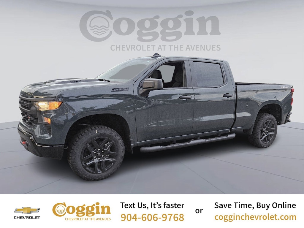 Cypress Gray 2026 Chevrolet Silverado 1500 Custom Trail Boss 4WD 10-Speed Automatic 3.0L I6 10-Way Power Driver Seat w/Lumbar, 120-Volt Bed Mounted Power Outlet, 120-Volt Interior Power Outlet, 220 Amp Alternator, 3.5 Monochromatic Display Driver Info Center, 6-Speaker Audio System, Apple CarPlay/Android Auto, Auto High-beam Headlights, Auto-Locking Rear Differential, Automatic Emergency Braking, Black Name Plates (LPO), Black Tailgate CHEVROLET Lettering (LPO), Bluetooth® For Phone, Cloth Rear Seat w/Storage Package, Custom Convenience Package, Dark Essentials Package (LPO), Deep-Tinted Glass, Delay-off headlights, Dual Exhaust w/Polished Outlets, Dual Rear USB Ports (Charge Only), Electric Rear-Window Defogger, Electronic Cruise Control, Emergency communication system: OnStar, Engine Block Heater, EZ Lift Power Lock & Release Tailgate, Following Distance Indicator, Forward Collision Alert, Front Pedestrian Braking, Front Rubberized Vinyl Floor Mats, Fully automatic headlights, HD Rear Vision Camera, Heavy-Duty Air Filter, Hill Descent Control, Hitch Guidance, Illuminated entry, IntelliBeam Automatic High Beam On/Off, Lane Keep Assist w/Lane Departure Warning, LED Cargo Area Lighting, Low tire pressure warning, OnStar Services Capable, Outside temperature display, Performance Red Recovery Hooks, Power Front Windows w/Driver Express Up/Down, Power Front Windows w/Passenger Express Down, Power Rear Windows w/Express Down, Preferred Equipment Group 2CX, Radio: Chevrolet Infotainment 3 System, Rear 60/40 Folding Bench Seat (Folds Up), Rear Rubberized-Vinyl Floor Mats, Rear step bumper, Remote Keyless Entry, Remote Vehicle Starter System, Security system, SiriusXM Trial Subscription, Standard Tailgate, Suspension Package, Teen Driver, Tire Pressure Monitoring System, Trailering Package, Voltmeter, Wi-Fi Hot Spot Capable. Price includes: $1000 - GM Bonus Cash. Exp. 11/03/2025 $1500 - Chevrolet Consumer Cash Program. Exp. 11/03/2025