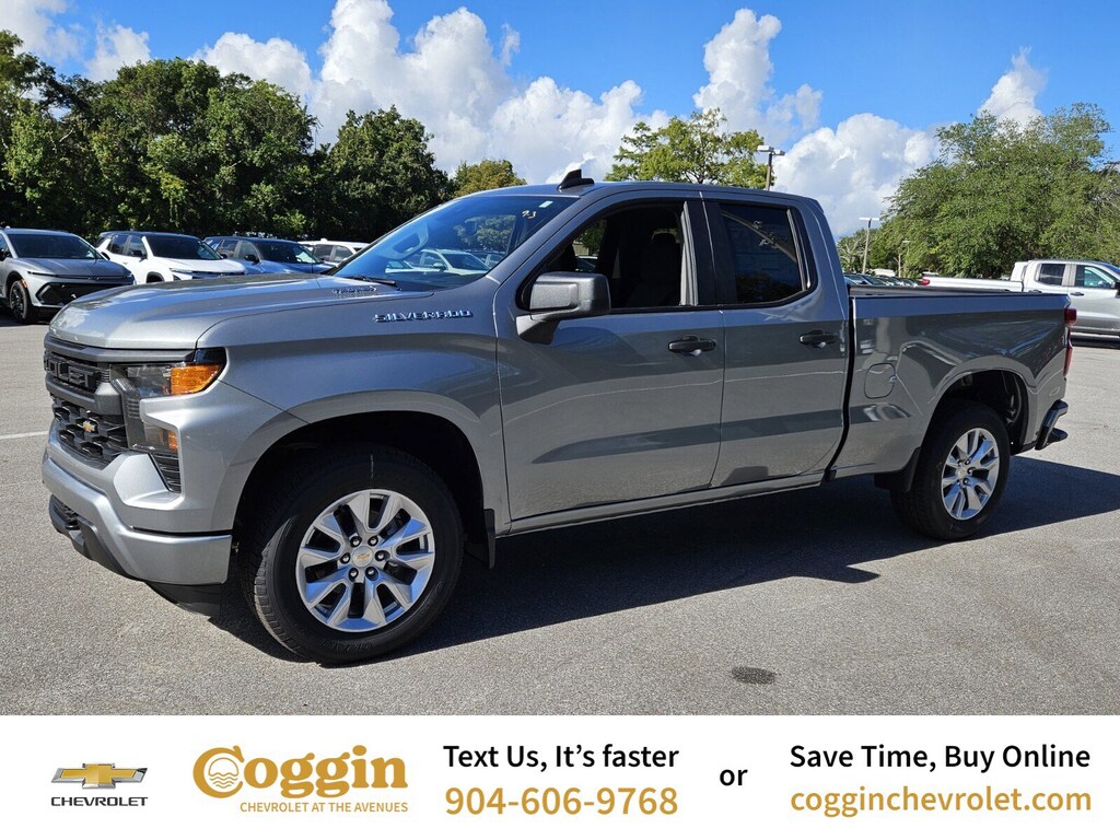 Sterling Gray Metallic 2026 Chevrolet Silverado 1500 Custom RWD 8-Speed Automatic 2.7L I4 Turbocharged DOHC 16V LEV3-SULEV30 310hp 10-Way Power Driver Seat w/Lumbar, 120-Volt Bed Mounted Power Outlet, 120-Volt Interior Power Outlet, 3.5 Monochromatic Display Driver Info Center, 6-Speaker Audio System, Apple CarPlay/Android Auto, Auto High-beam Headlights, Automatic Emergency Braking, Bluetooth® For Phone, Chevytec Spray-On Black Bedliner, Custom Convenience Package, Custom Value Package, Deep-Tinted Glass, Delay-off headlights, Dual Rear USB Ports (Charge Only), Electric Rear-Window Defogger, Electronic Cruise Control, Emergency communication system: OnStar, EZ Lift Power Lock & Release Tailgate, Following Distance Indicator, Forward Collision Alert, Front Frame-Mounted Black Recovery Hooks, Front Pedestrian Braking, Front Rubberized Vinyl Floor Mats, Fully automatic headlights, HD Rear Vision Camera, High Capacity Suspension Package, Hitch Guidance, Illuminated entry, IntelliBeam Automatic High Beam On/Off, Lane Keep Assist w/Lane Departure Warning, LED Cargo Area Lighting, Low tire pressure warning, OnStar Services Capable, Power Front Windows w/Driver Express Up/Down, Power Front Windows w/Passenger Express Down, Power Rear Windows w/Express Down, Preferred Equipment Group 1CX, Premium audio system: Chevrolet Infotainment 3, Radio: Chevrolet Infotainment 3 System, Rear 60/40 Folding Bench Seat (Folds Up), Rear Rubberized-Vinyl Floor Mats, Rear step bumper, Remote Keyless Entry, Remote Vehicle Starter System, Security system, SiriusXM Trial Subscription, Standard Tailgate, Teen Driver, Tire Pressure Monitoring System, Trailering Package, Voltmeter, Wheels: 20 x 9 Bright Silver Painted Aluminum, Wi-Fi Hot Spot Capable. Price includes: $1000 - Chevrolet Select Market Bonus Cash. Exp. 12/01/2025 $1000 - GM Bonus Cash. Exp. 12/01/2025 $1750 - Chevrolet Consumer Cash Program. Exp. 12/01/2025