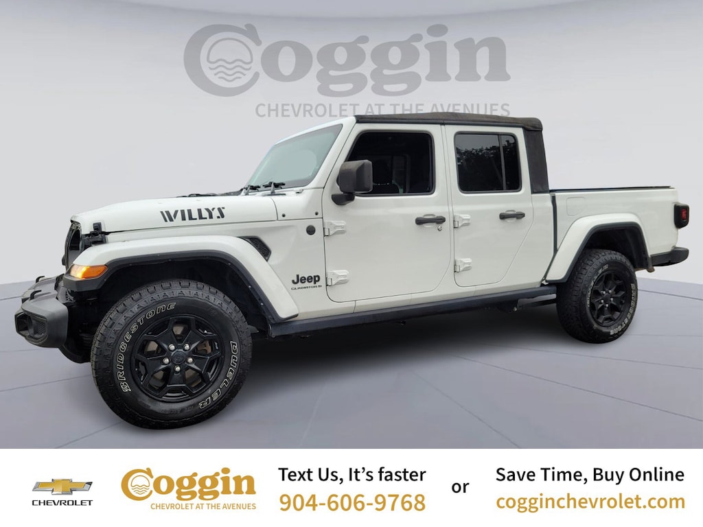 **LOCAL TRADE-IN**, **LOCALLY OWNED AND SERVICED**, **FOUR WHEEL DRIVE**, **ADVANCED SAFETY TECHNOLOGY**, **BACK UP CAMERA**, **REARVIEW CAMERA**, **KEYLESS ENTRY**, **APPLE CARPLAY**, **BLUETOOTH, HANDS-FREE**, **ANDROID AUTO**, **SATELLITE RADIO**, **STEERING WHEEL CONTROLS**, **ALARM SYSTEM**, Gladiator Willys, 4D Crew Cab, 3.6L V6 24V VVT, 4WD, 240 Amp Alternator, 4-Wheel Drive Decal, 8 Speakers, 97 MPH Vehicle Max Speed Calibration, Anti-Spin Differential Rear Axle, Black Grille, Body Color Fender Flares (2-Piece), Class IV Receiver Hitch, Daytime Running Lamp System, Deep Tint Sunscreen Windows, Front Heavy Duty Red Accent Shock Absorbers, GPS Antenna Input, Heavy-Duty Engine Cooling, Integrated Voice Command w/Bluetooth, Mold In Color Bumper w/Gloss Black, MOPAR All-Weather Slush Mats, Protection Sill Rails, Quick Order Package 24K Willys Sport (DISC), Rear Heavy Duty Red Accent Shock Absorbers, Steering wheel mounted audio controls, Trailer Hitch Zoom, Trailer Tow Package, Wheels: 17 x 7.5 Black Aluminum w/Gray Pad (DISC), Willys, Willys Hood Decal. 4WD 8-Speed Automatic 3.6L V6 24V VVT Priced below KBB Fair Purchase Price! CARFAX One-Owner.