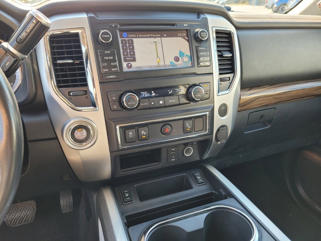**LOCAL TRADE-IN**, **LOCALLY OWNED AND SERVICED**, **ADVANCED SAFETY TECHNOLOGY**, **BACK UP CAMERA**, **LEATHER SEATS**, **REARVIEW CAMERA**, **KEYLESS ENTRY**, **BLUETOOTH, HANDS-FREE**, **PREMIUM WHEELS**, **PREMIUM SOUND SYSTEM**, **SATELLITE RADIO**, **STEERING WHEEL CONTROLS**, **ALARM SYSTEM**, **TOW PACKAGE**, Titan SL, 4D Crew Cab, 5.6L V8, Black w/Leather Seat Trim, 12 Speakers, Auto tilt-away steering wheel, Auto-dimming door mirrors, Auto-dimming Rear-View mirror, Automatic temperature control, Blind Spot Warning, Delay-off headlights, Emergency communication system: NissanConnect Services, Front Bucket Seats, Front dual zone A/C, Front fog lights, Garage door transmitter: HomeLink, Heated front seats, Illuminated entry, Leather Seat Trim, Leather steering wheel, Low tire pressure warning, Memory seat, Navigation System, Outside temperature display, Power driver seat, Power passenger seat, Radio: NissanConnect w/SiriusXM/Navi & Mobile Apps, Rain sensing wipers, Remote keyless entry, Security system, Siri Eyes Free, Steering wheel memory, Steering wheel mounted audio controls, Telescoping steering wheel, Voltmeter, Wheels: 20 x 8 Painted Alloy. RWD 7-Speed Automatic 5.6L V8 Clean CARFAX.